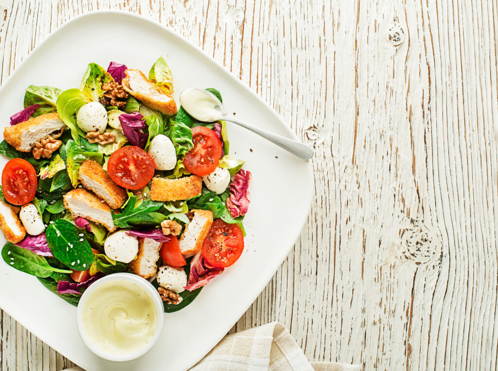- Add and toss the Salad Mix with the pesto dressing until evenly coated.