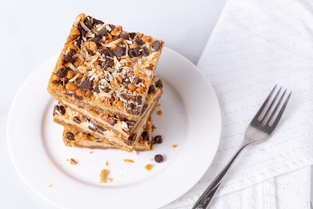 - Distribute the semi-sweet chocolate chips evenly over the pan.